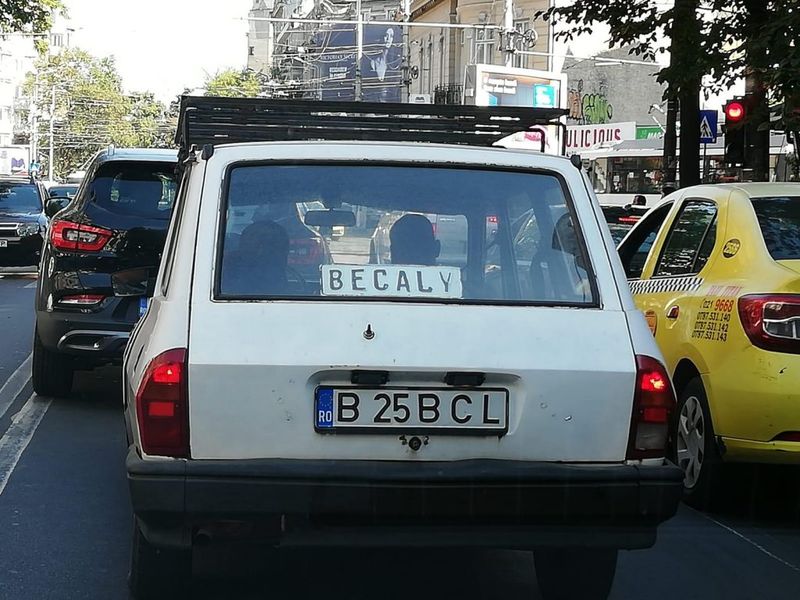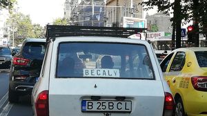 O Dacie veche, cu numele lui Becali afișat la loc de cinste pe geamul din spate, a apărut în Capitală.
