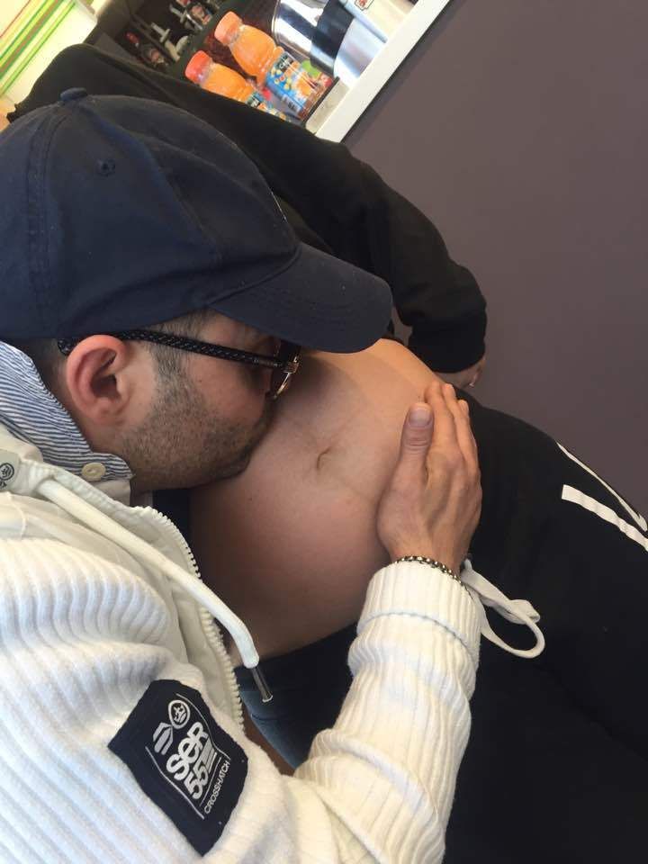 "Dedicaţie de la finii mei dragi, Alex şi Ana... încă puţin şi apare băiatul meu, Alexandru Mario!!!", a scris el in dreptul unei imagini cu burtica sotiei lui.
