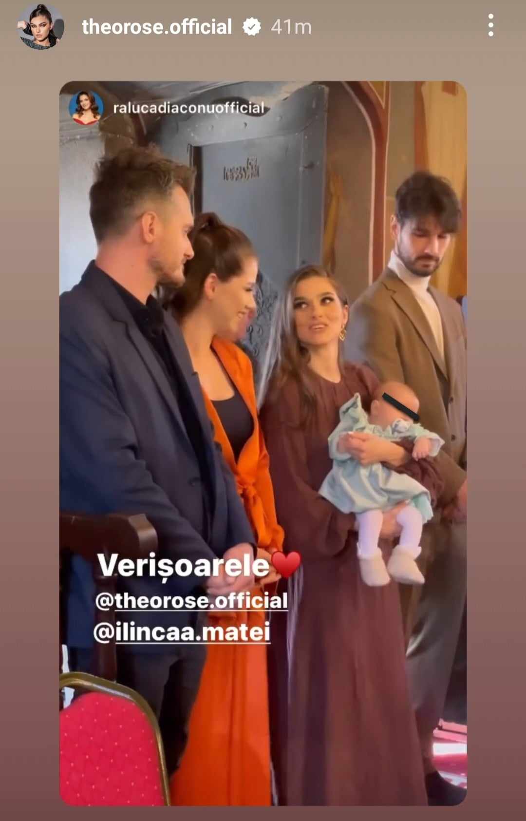 Ei bine, cei doi au fost nași mari de botez pentru micuța Agatha Elena, fiica verișoarei cântăreței. Cu o asemenea ocazie specială, îndrăgita vedetă nu putea să nu împărtășească bucuria și cu urmăritorii săi de pe rețelele de socializare, astfel că a publicat primele imagini de la fericitul eveniment.