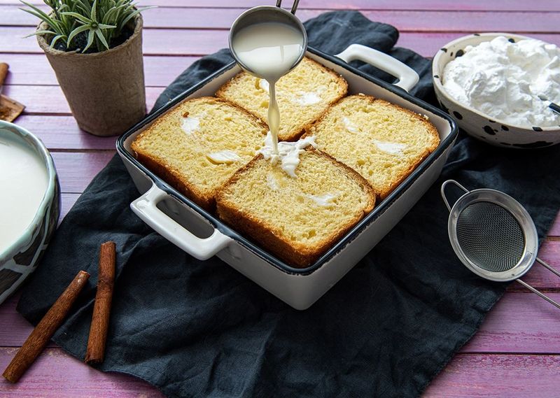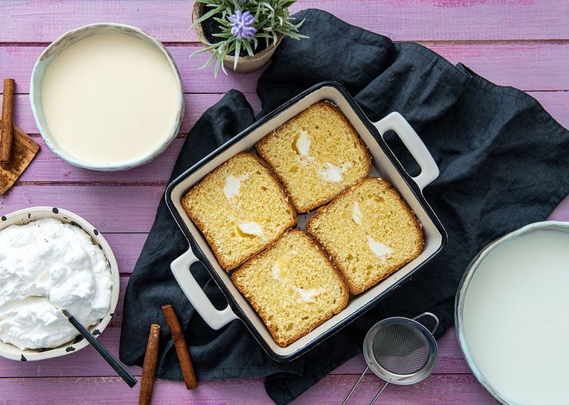 Pasul 1: Taie Cozonacul Boromir cu cremă de lapte în felii potrivite pune-l într-o tavă cu pereți.