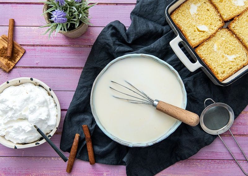 Pasul 4: Însiropeaza cozonacul cu siropul din lapte și orneaza totul cu frisca. Poți sa folosesti ca topping scortisoara.