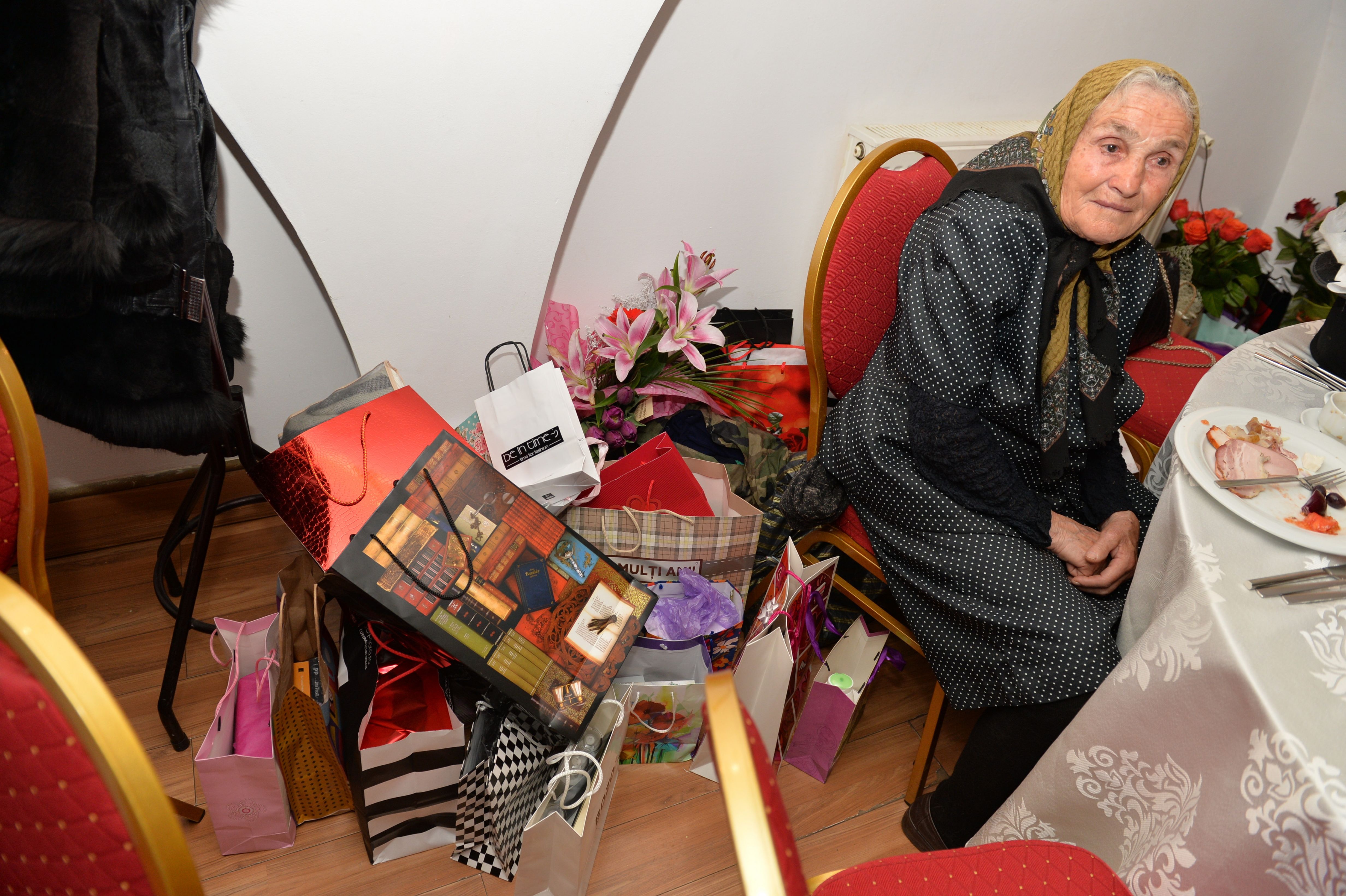 Ei bine, la petrecere a fost prezenta si bunica Oanei, o batranica simpatica in varsta de 83 de ani. Imbracata simplu, cu vesta de lana si basma pe cap, bunica Oanei a rezistat ore bune la chef, unde a primit sarcina sa stea de paza si sa supravegheze zecile de pungi de cadouri primite de sarbatorita de la invitati.