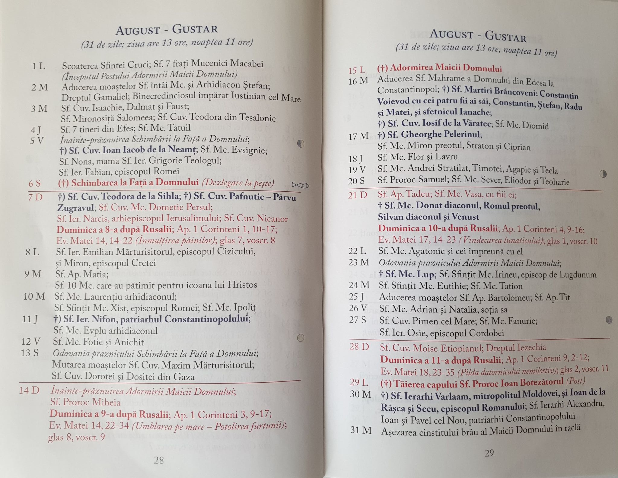 • 6 August – Schimbarea la Față a Domnului Iisus Hristos