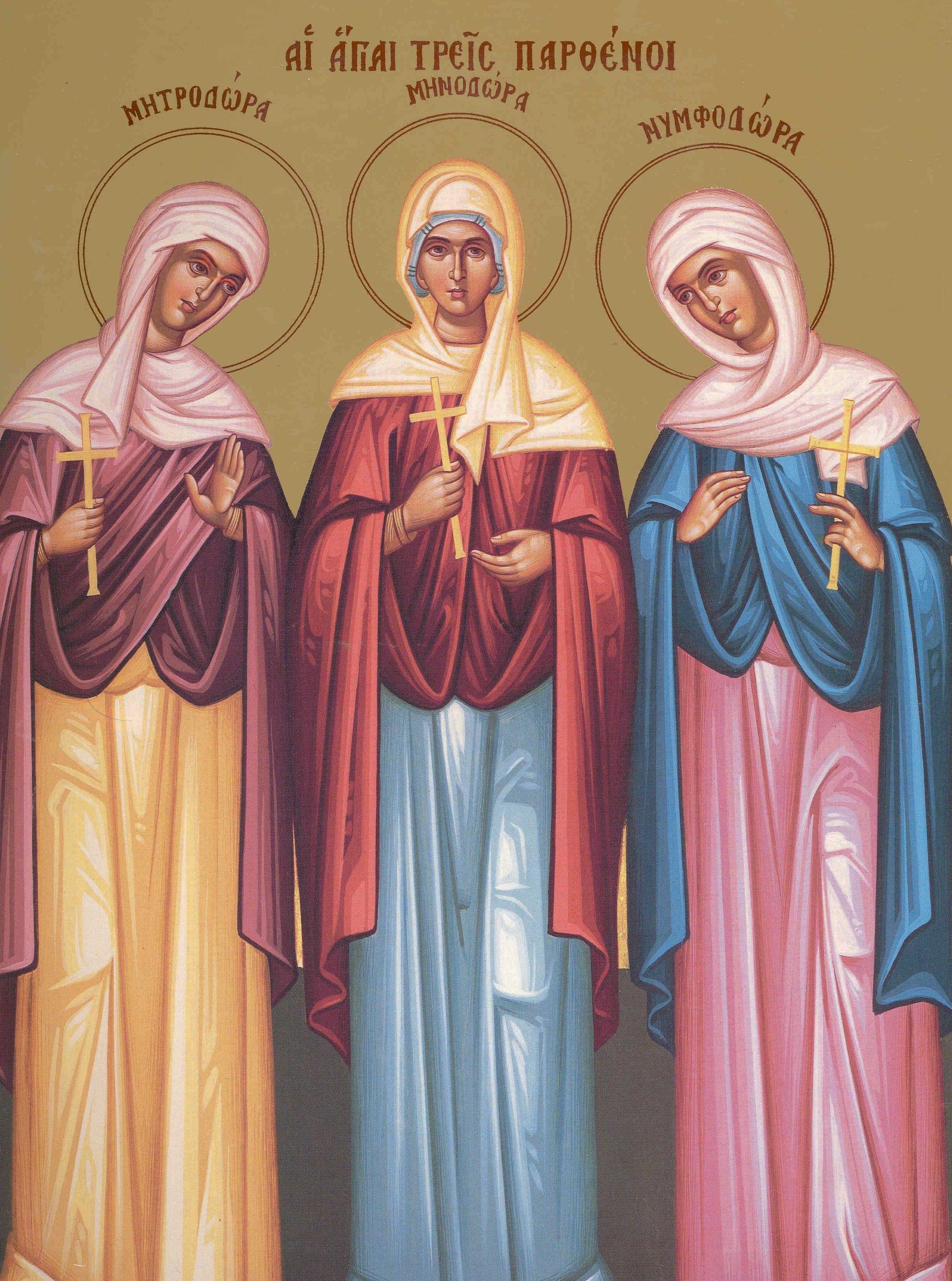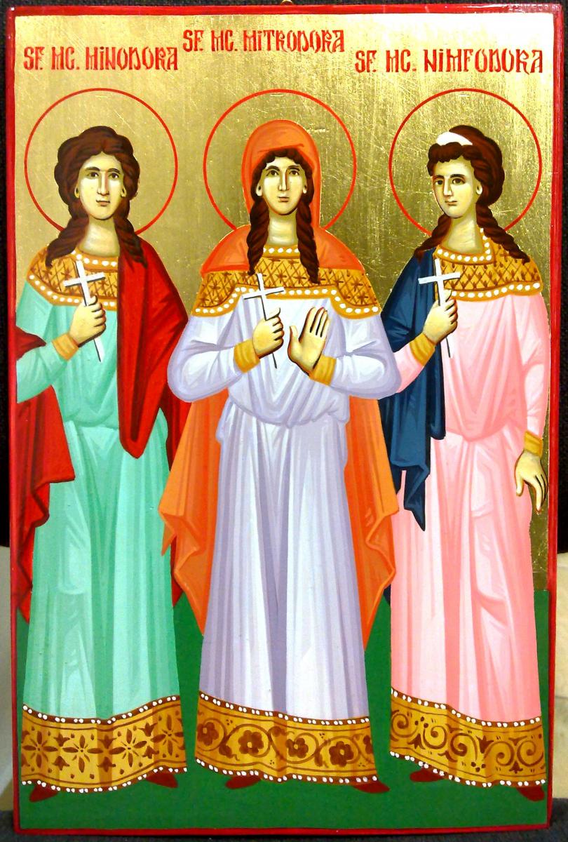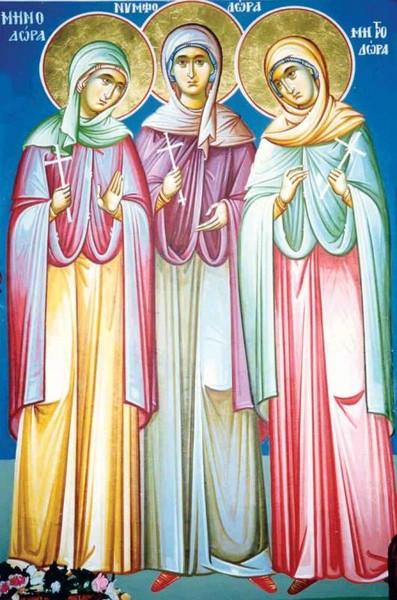 Sfintele Mucenițe Minodora, Mitrodora și Nimfodora au fost surori și au trăit pe vremea împăratului Maximian. Cele trei surori s-au născut în Asia Mică, iar la vârsta maturității s-au retras pe un deal înalt ca să trăiască în post și rugăciune.