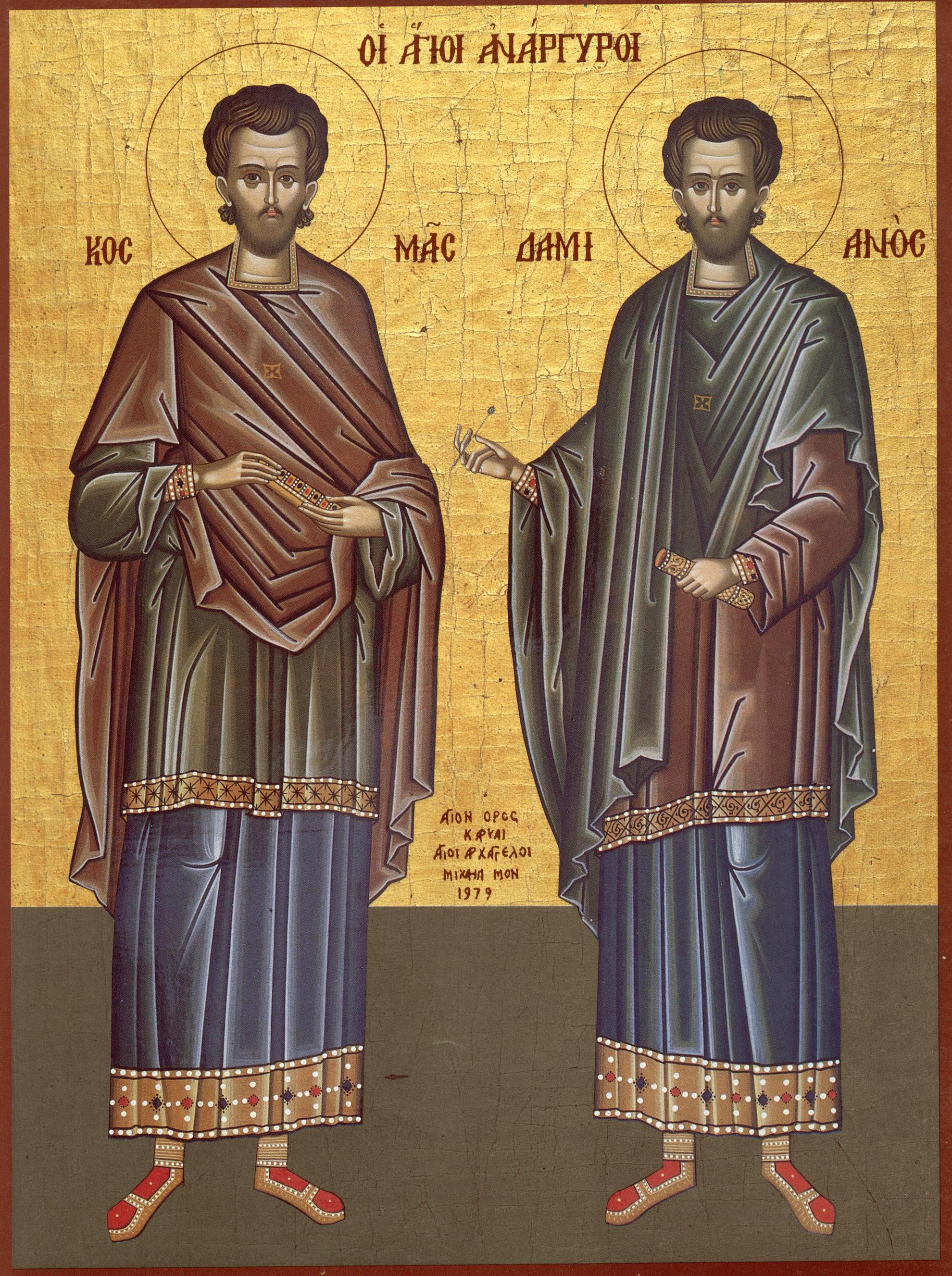 Sfinții doctori fără de arginți, Cosma și Damian erau doi frați iubitori de Dumnezeu, care vindecau oameni și animale, cu rugăciunile și leacurile lor tămăduitoare.