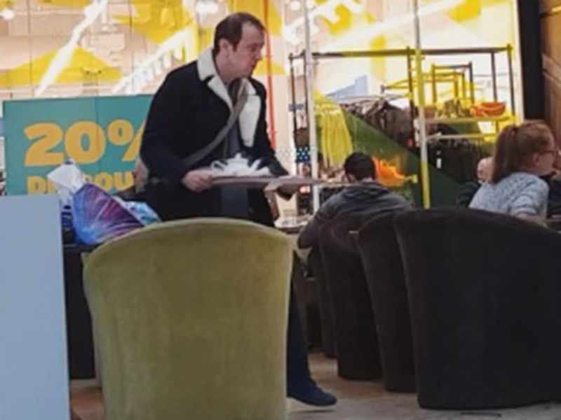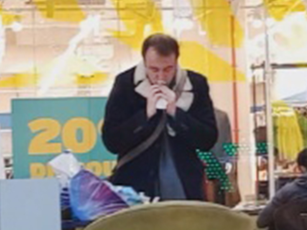 Călin este un tip extrem de sociabil, așa că la prima vedere pare surprinztăro faptul că în imaginile realizate de paparazzi, acesta este singur. Destul de grăbit, acesta își termină masa în picioare, după care se îndreaptă către zona de debarasare pentru a goli resturile de pe tavă. Se întoarce rapid și își ia sacoșele pe care le lăsase nesupravegheate la masă, după care părăsește îngândurat zona de restaurante ale complexului comercial.