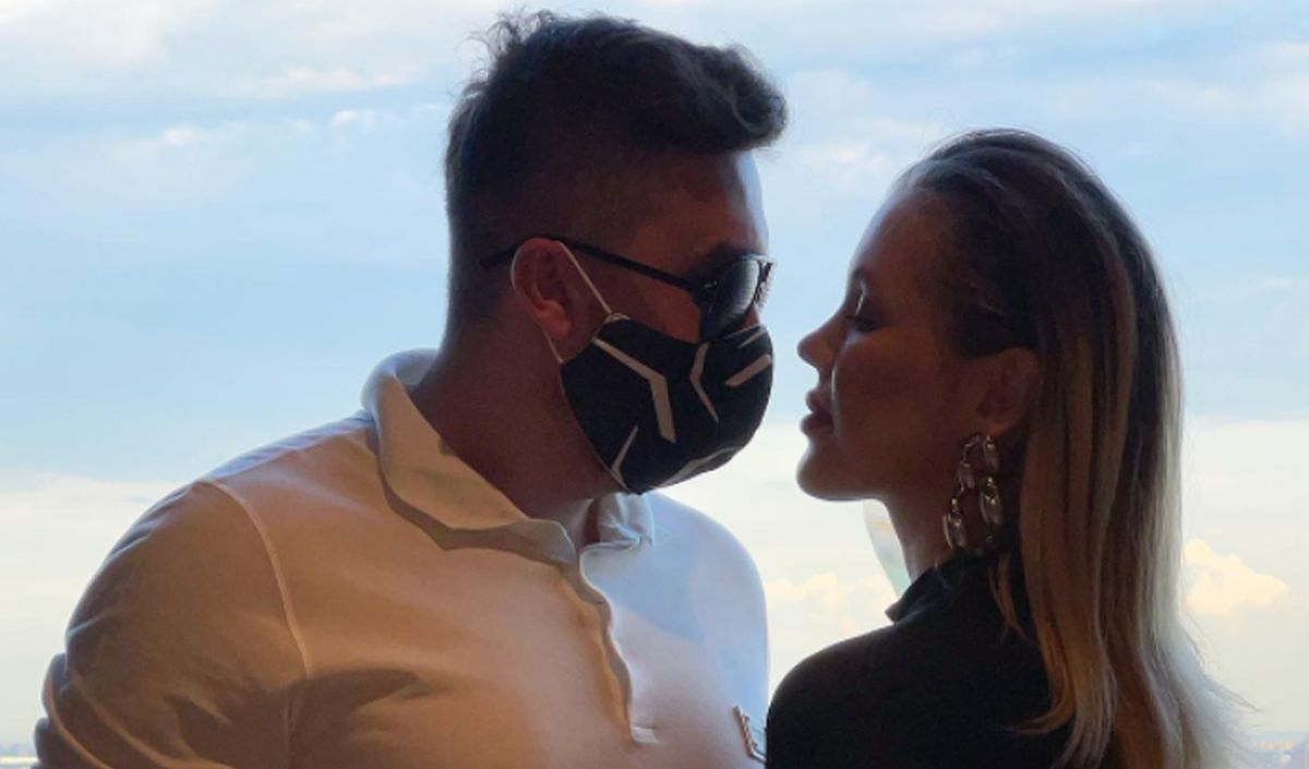 Emily Burghelea și iubitul ei Andrei, în timp ce el poartă mască
