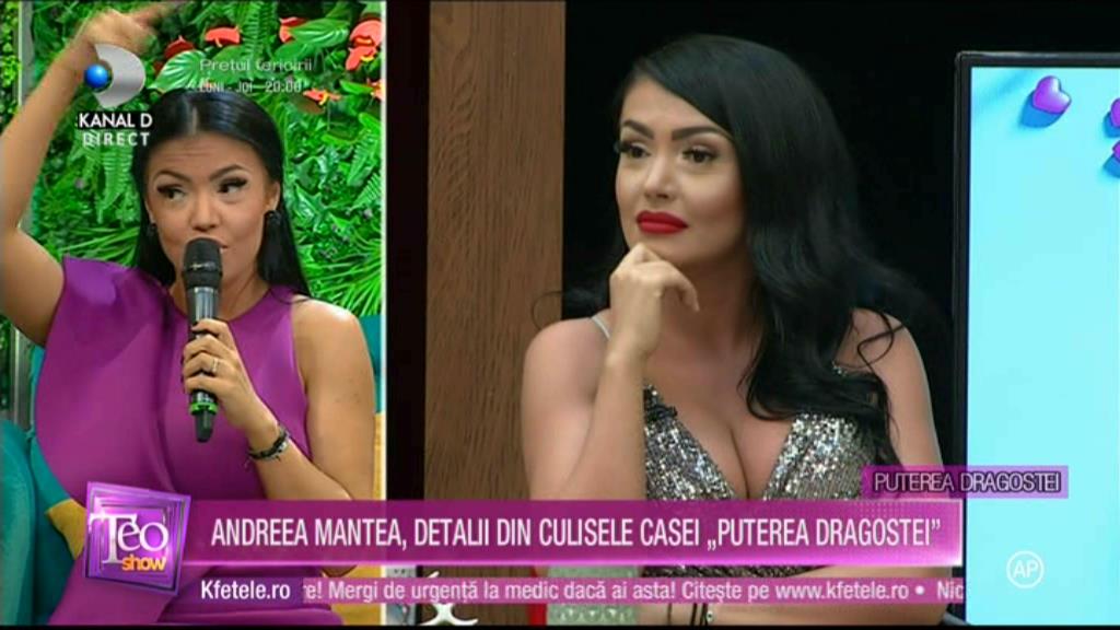Toată lumea compară cu MPFM, acolo oamenii nu aveau telefoane, aici stai, vorbești, îl cunoști, faci ce vrei tu, și când ieși din emisiune mama, sora, susținătorii își scriu. Ce putere de convingere au ei?”, a spus Andreea Mantea despre emisiunea Puterea Dragostei.