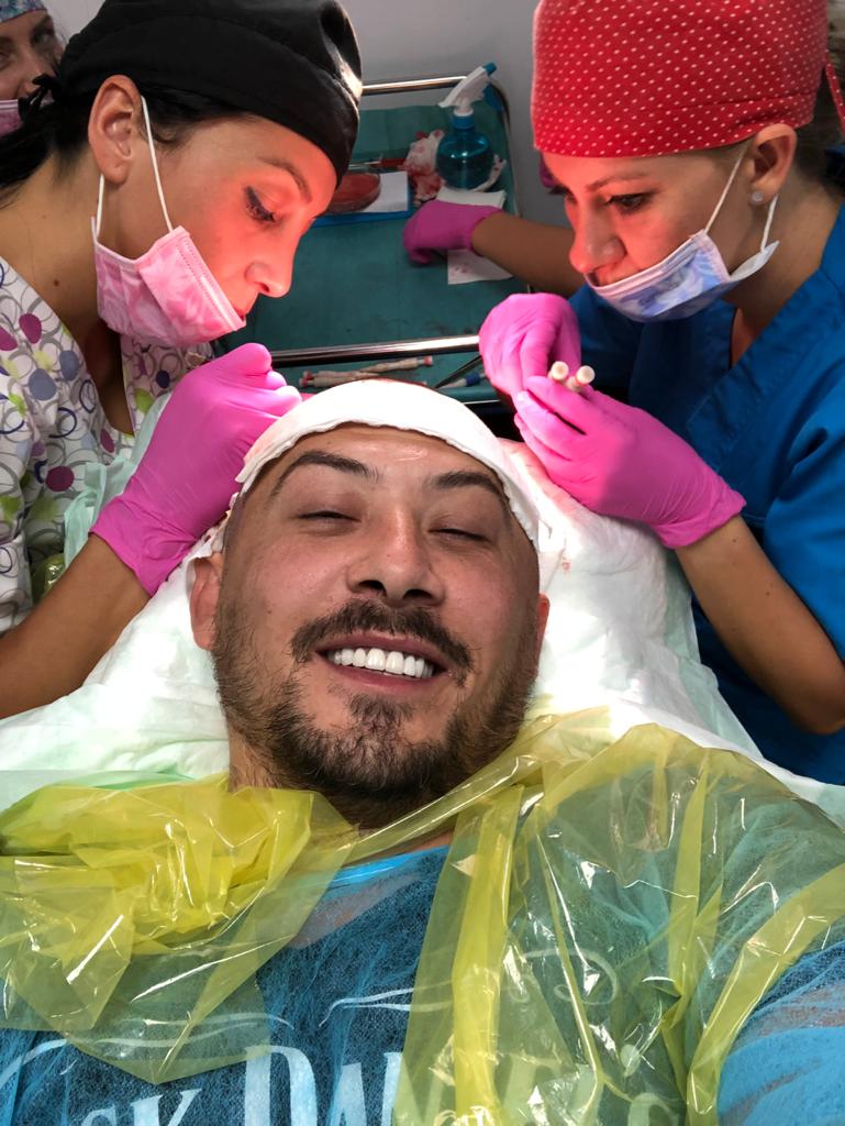 Ștefan Stan, implant de păr! „În cazul lui Ștefan Stan, provocarea a fost zona donatoare rară, din cauza celor două intervenții anterioare. De aceea a trebuie să recoltăm cât de mult am putut, fără să lăsăm cicatrici vizibile la nivelul cefei. În final am reușit să recoltăm și să implantam aproximativ 2000 de grefe (4500 fire de păr). Operația a decurs normal, i-am oferit medicația postoperatorie și i-am explicat ce trebuie să facă în săptămânile/lunile următoare. Acum, la 7 luni după operațierezultatele sunt excelente, iar el e foarte mulțumit”, a spus medicul Mihai Motora.
