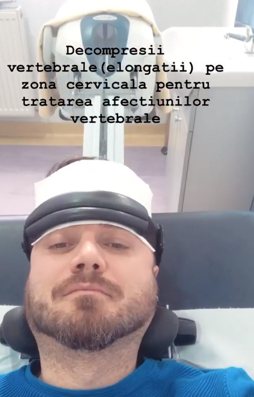 Elongaţii pe zona cervicală pentru tratatrea durerilor locale. Decompresie vertebrală în zona lombară pentru tratarea afecţiunilor locale", a scris Tavi Clonda pe Instagram, alături de mai multe imagini din timpul tratamentului.