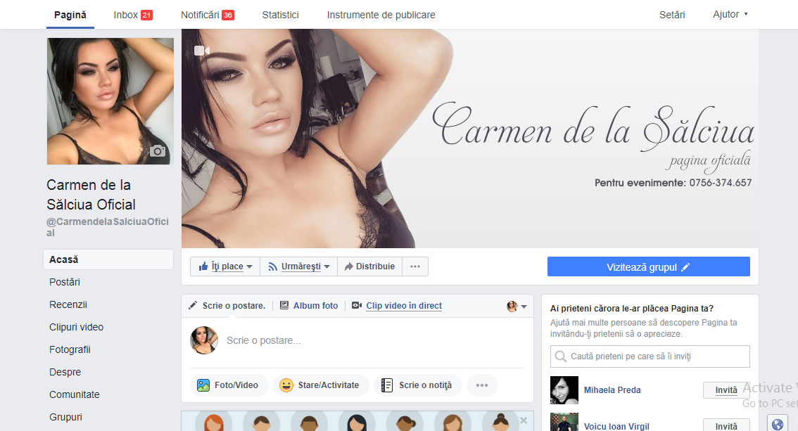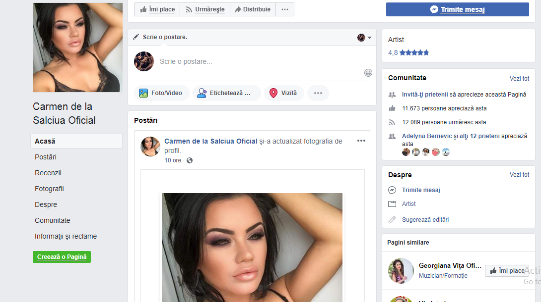 "Dragii mei, va invit sa îmi urmăriţi activitatea şi pe pagina mea oficială de Facebook! Este singura pagina oficiala de care ma ocup eu! Restul nu îmi aparţin! Va pup", a scris Carmen de la Salciua pe contul personal de Facebook.