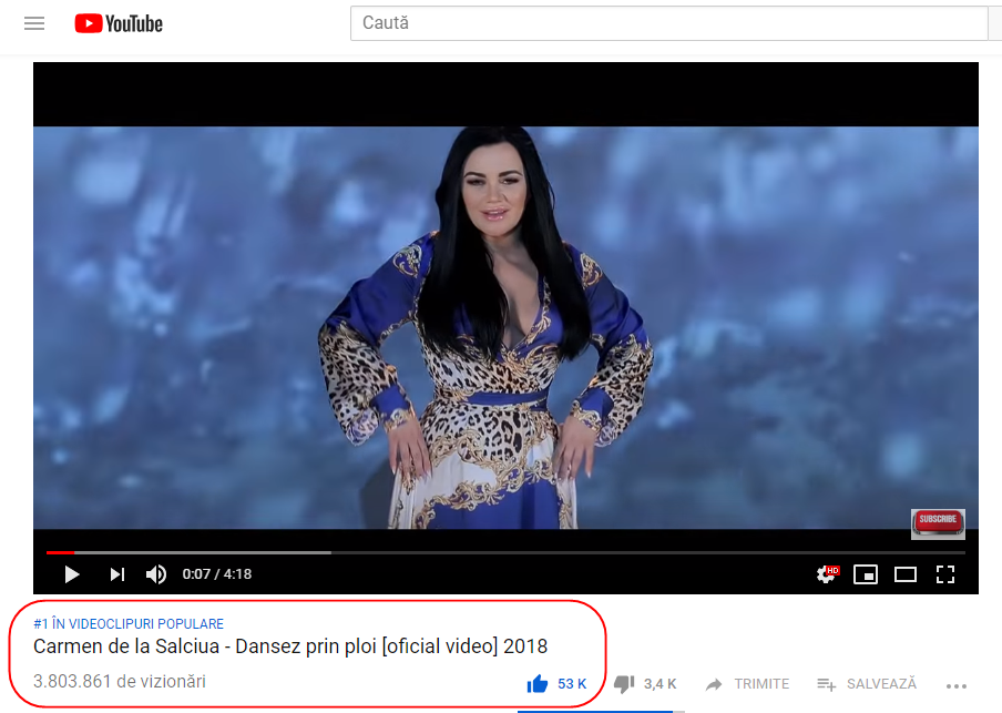 Cel mai recent single al artistei este pe locul intai in topul celor mai populare videoclipuri din Romania si a adunat aproape 4.000.000 de vizualizari pe YouTube, in doar 8 zile de la lansare. Mai mult, artista se afla in Trending inaintea unor artisti de top din muzica usoara precum The Motans, Vescan, Mira, Smiley, Alina Eremia, F.Charm, sau Delia.