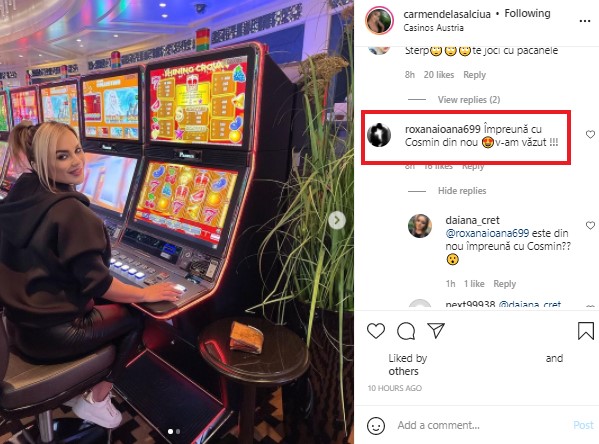 Artista este genul de vedetă care ține mereu legătura cu fanii prin intermediul rețelelor de socializare și nu trece o zi fără să nu posteze ceva pe Instagram. În urmă cu câteva ore, Carmen de la Sălciua a pus o fotografie cu ea în care apare într-un casino din Viena, Austria. Nu faptul că joacă la păcănele le-a atras atenția internauților, ci cu totul și cu totul altceva.