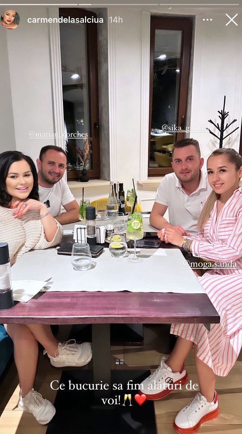 „Nașii sunt singur familie pe care ți-o alge cu inima! Noi v-am ales pe voi, nași de poveste! Se spune că oamenii cresc unde sunt respectați și rămân acolo unde sun iubiți. Marian i Carmen, ne dorim să fim alături de voi în acest nou început împreună. Vreți să fiți nașii noștri? Cu dragoste și apreciere, Gabriela și Sanda.”, a fost mesajul pe care Carmen de la Sălciua și soțul său l-au primit din partea viitorilor fini.
