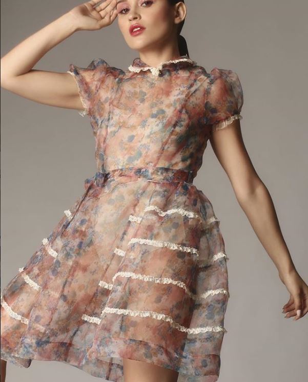 Irina Rimes poartă tot mai des o rochie transparentă, roz. E adevărat că îi stă şi foarte bine în ea.