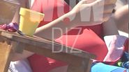 Iustina Cornel s-au făcuți remarcați în timpul realityshowului din Thailanda, acolo unde au mers să-și testeze relația. Deși frumoasa șatenă s-a despărțit de partenerul de viață chiar în timpul emisiunii, ulterior au apărut în social – media imagini de la nunta lor, dar și fotografii cu burtica de gravidă a Iustinei. Costumul de baie roșu, dintr-o singură piesă, îi vine de minune frumoasei șatene, dar în imaginile surprinse de paparazzi WOWbiz.ro se vede cum șatena are și o vânătaie mare pe picior, în partea de sus.