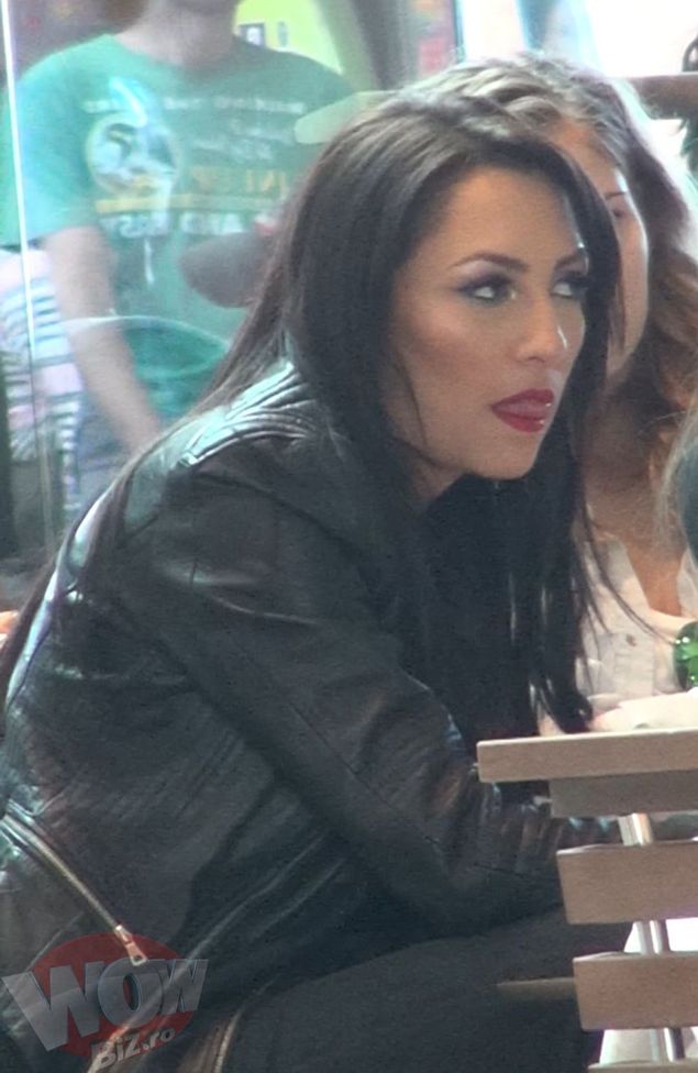 Cat de sexy e Andra chiar si atunci cand iese doar cu fetele in oras! Uite ce miscari face cu limba! Barbatii de la mesele vecine n-au scapat-o din ochi!