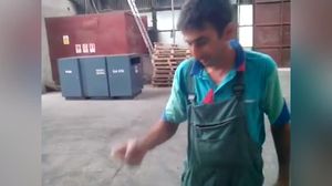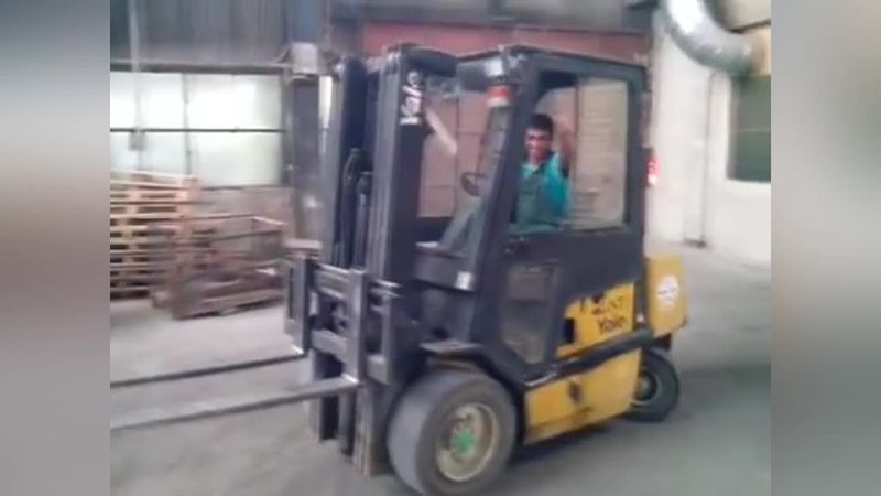 Cat de tare e stivuitoristul asta! Uite-l cum baga o moneda de 10 bani intr-o sticla de suc cu ajutorul utilajului! Mama, e genial omul!