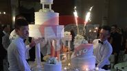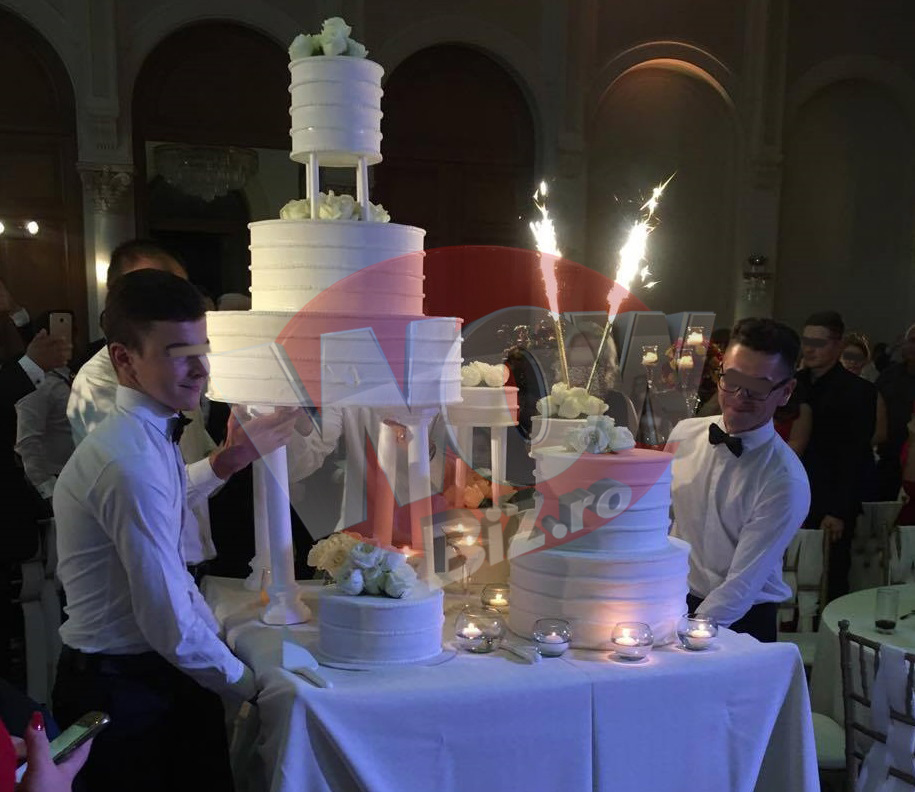 Spre dimineata a fost adus si tortul, unul cu mai multe etaje, alb complet si ornat cu trandafiri naturali.