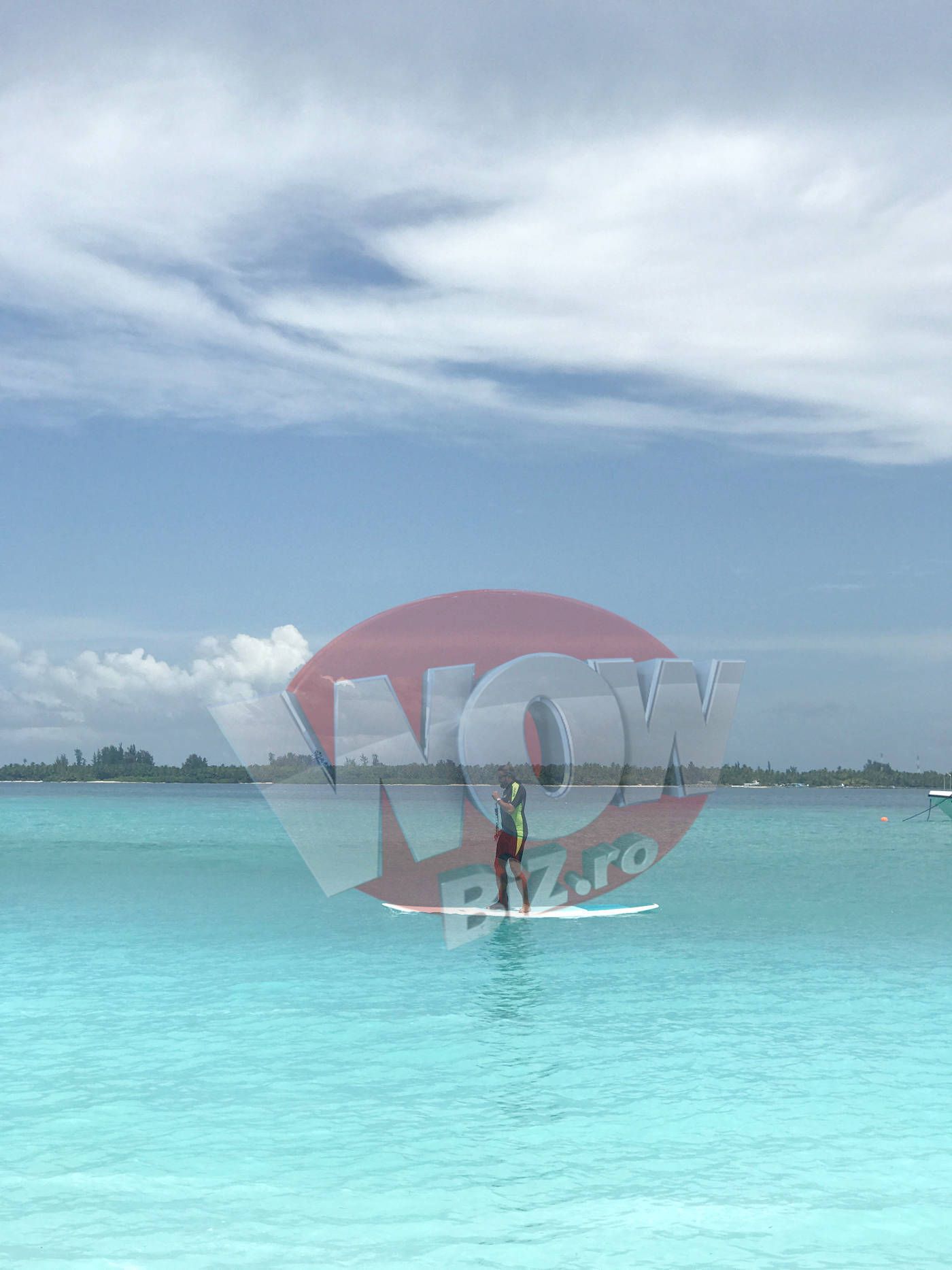 “In urma cu doi ani am invatat sa practic SUP pe lacul IOR din Bucuresti. M-am bucurat cand am aflat ca poti face acest sport la Maldive. Intr-o parte a insulei apele sunt foarte linistite, ceea ce inseamna ca iti permit sa te urci pe placa, sa iti tii echilibrul in picioare si sa te deplasezi vaslind.