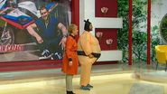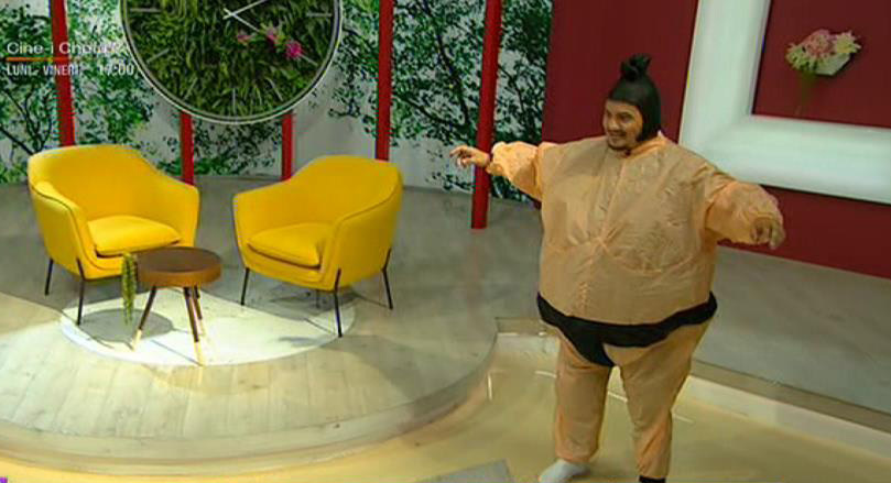Catalin Cazacu se pregateste de prima editie a emisiunii lui de la Kanal D: Cash Taxi. Pana atunci s-a imbracat in costum de sumo si a acceptat provocarea de la Teo Show.
