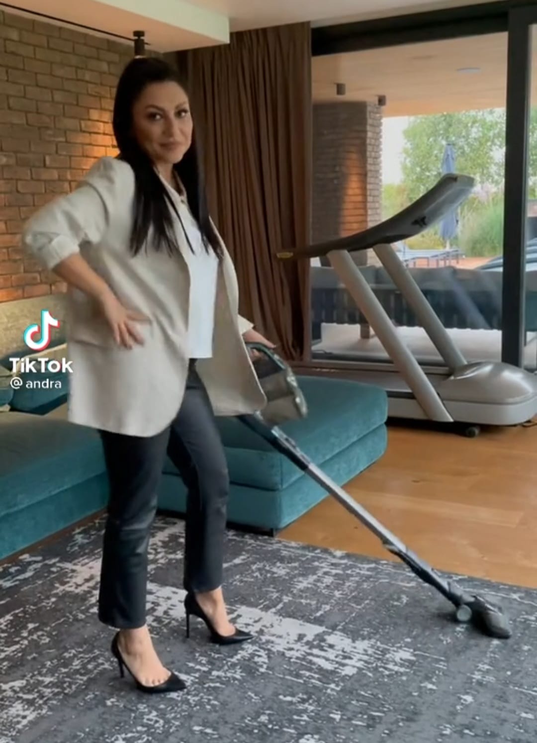 Reacția artistei nu a întârziat să apară, căci a postat imediat un clip într-o ținută office, în timp ce dădea cu aspiratorul: "Așa e bine?", l-a întrebat cântăreața pe soțul ei, într-un mod sarcastic.