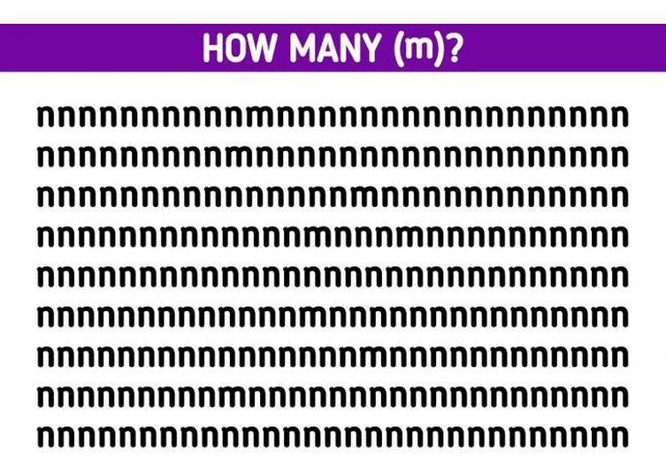 În imagine, sunt nouă rânduri în care sunt înșirate litere de „n”, însă printre ele sunt adăugate mai multe litere de „m”, pe care trebuie să le identifici într-un timp prestabilit.