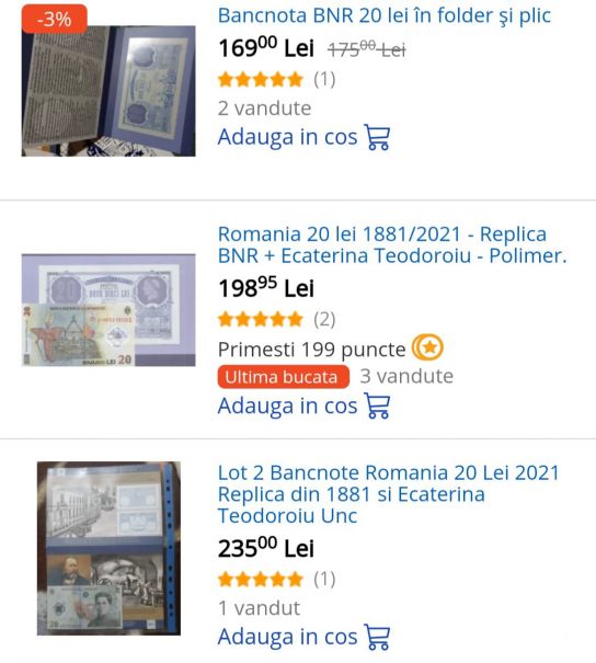 Astfel, curioșii nu au stat pe gânduri și au dat o căutare pe internet, în speranța că vor putea să cumpere la un preț rezonabil bancnota cu Ecaterina Teodoriu. Mare le-a fost mirarea, însă, atunci când au găsit zeci de anunțuri, de la deținători, care vindeau bancnota pe sume colosale. Dacă unii s-au încumetat să ceară doar 25 de lei, alții au profitat de raritatea ei și au ridicat prețul până aproape de 200 de lei.