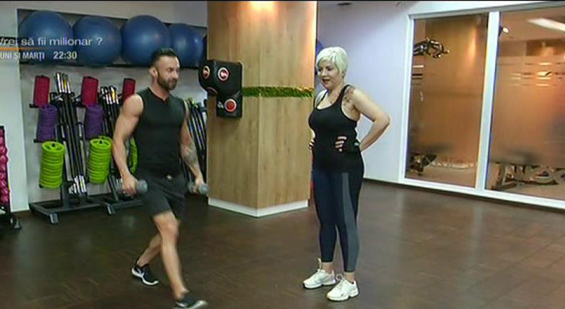 Antrenorul personal al Catincăi e foarte mulţumit. "Dietă, combinăm aparate, improvizăm. Nu încearcă să mă păcălească, ştie că o face pentru ea".