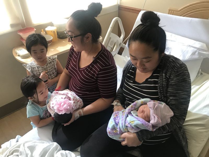 Surorile au intrat în travaliu în acelaşi timp şi, deşi erau programate să nască la două zile diferenţă, ele le-au adus pe lume pe fiicele lor la distanşă de doar o oră.