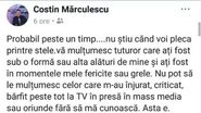 Costin Mărculescu, o prezenţă obişnuită a show-urilor nocturne de divertisment şi a evenimentelor mondene şi-a cutremurat cunoştinţele cu un mesaj sumbru.