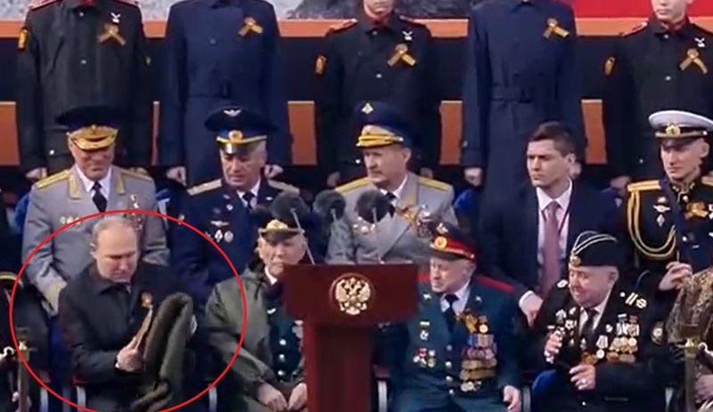 La scurt timp după ce a părăsit scena pe care a făcut mai multe declarații propagandiste, liderul de la Kremlin s-a retras în logă, alături de ceilalți miniștri și generali ai săi. S-a așezat pe scaun și s-a învelit cu o pătură. Imaginile cu el au făcut înconjurul internetului și au stârnit un val de reacții, fiind intens comentate de internauți. Nici Cristian Tudor Popescu nu s-a putut abține și a făcu o postare pe baza imaginilor care i-au băgat la mari suspiciuni pe mulți.