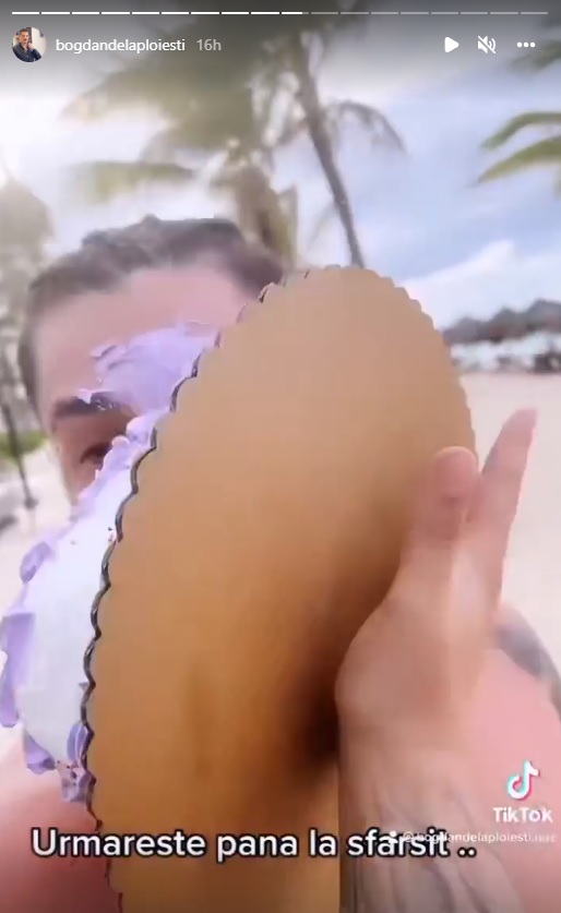 În timp ce se uita la mare, la peisajul frumos în care se afla, unul dintre amicii lui Bogdan de la Ploiești s-a furișat pe la spatele lui și când a ajuns lângă el, i-a oferit un tort delicios fix în față.