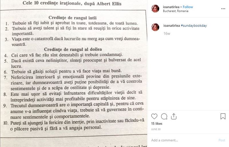 La sfârșitul lunii iunie, mai exact în data de 30 iunie, tânăra de 29 de ani din București, Ioana Țîrlea, a postat pe rețelele de socializare o imagine dintr-o carte de referință credincioasă. Astfel că în capitolul credințe de rangul 1, cea de-a treia regulă făcea referire la ”Viața este o catastrofa dacă lucrurile nu merg așa cum vreți dumneavoastră”.
