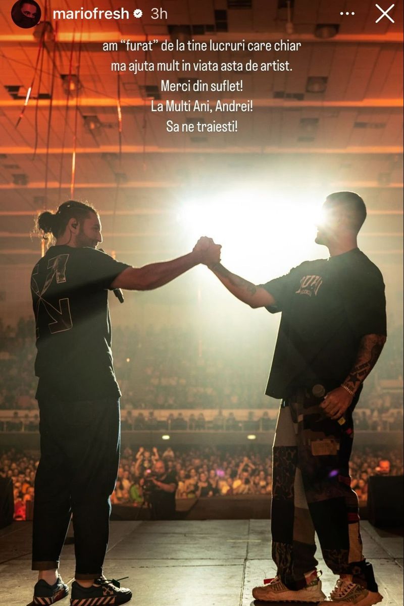 „Am ”furat” de la tine lucruri care chiar mă ajută mult în viața asta de artist. Merci din suflet! La mulți ani, Andrei! Să ne trăiești!”, este mesajul pe care Mario Fresh i l-a transmis lui Smiley astăzi, cu ocazia zilei de naștere.