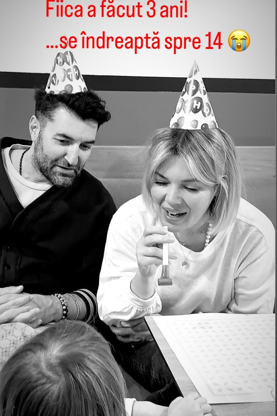 „Fiica a făcut 3 ani!... Se îndreaptă spre 14”, a scris Gina Pistol, în dreptul unei imagini cu fiica ei, Josephine, și cu partenerul de viață, Smiley.