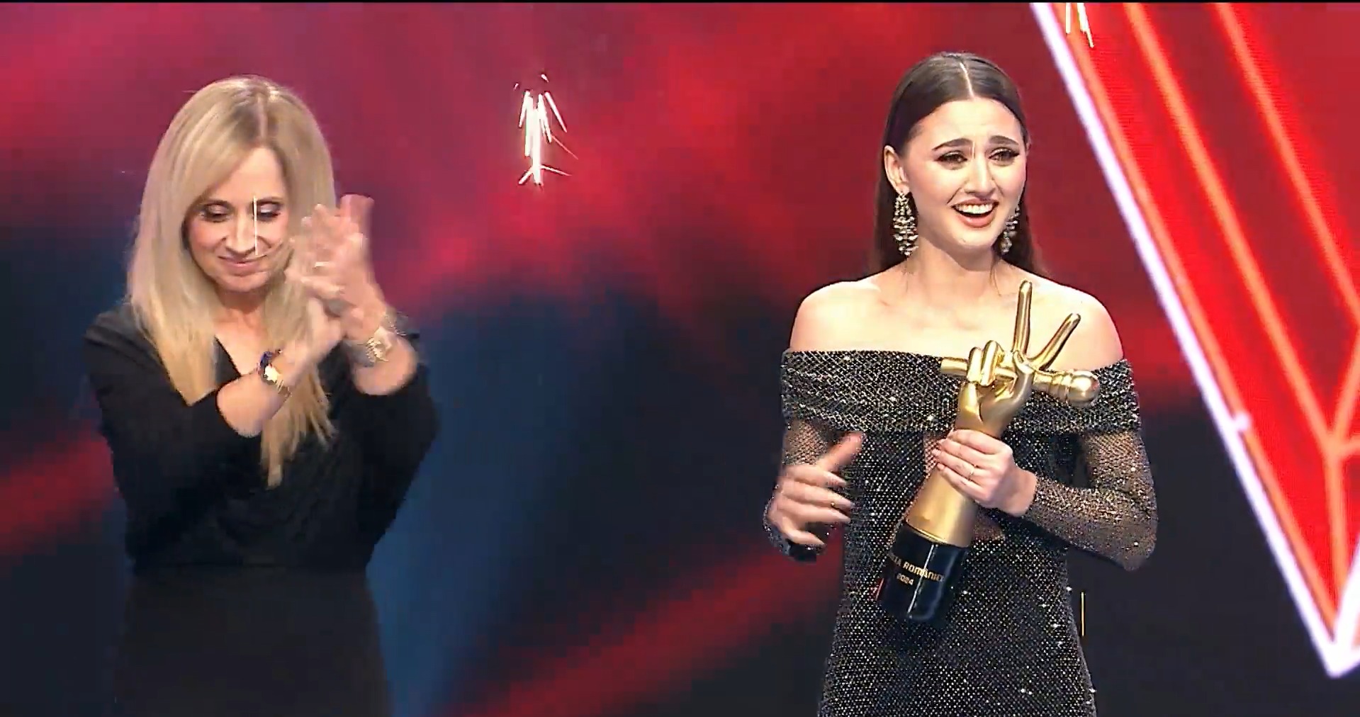 Trofeul Vocea României i-a fost înmânat câștigătoarei de marea artistă belgiană, Lara Fabian, care a venit special în România pentru finala emisiunii.