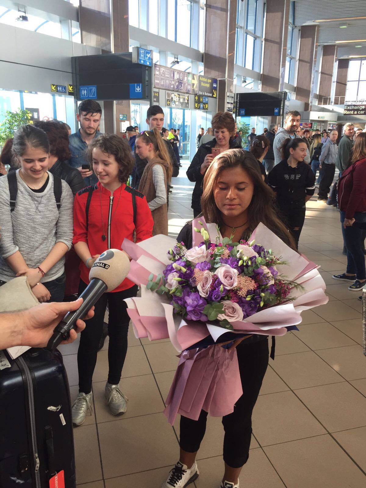 Diana Bulimar s-a intors vineri de la Exatlon, fiind intampinata pe aeroport de antrenorul ei de si cateva colege. Prietenele fostei gimnaste au imbratisat-o pe aceasta de cum a iesit pe usa aeroportului.