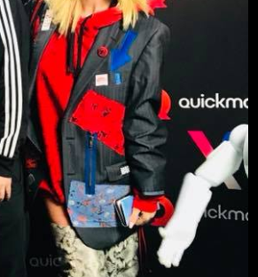 Delia a ales sa se poarte o vestimentatie socanta, compusa dintr-un hanorac rosu, mai lung, un sacou cambrat, de culoare gri petrol inchis, cu sageti albastre, gentuta bleu cu floricele si dreptunghiuri rosii, la care a asortat un portofel de dimensiuni mari! (ce a parit mama Deliei cand a adus-o pe cantareata pe lume, detalii socante)