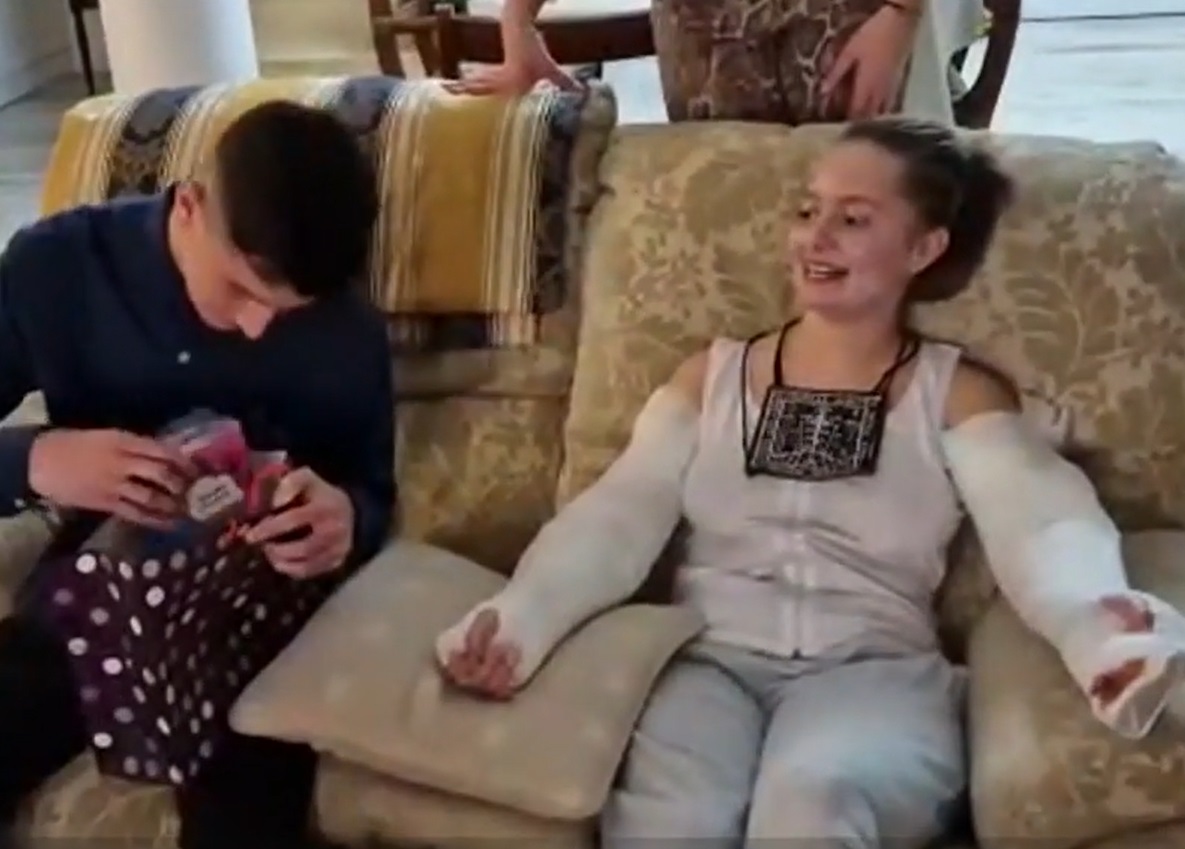 Alexia, adolescenta cu brațele amputate în accidentul de la Pașcani și-a sărbătorit Revelionul alături de familie și colegii de la ansamblu