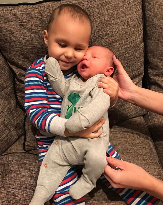 In imaginea publicata pe contul personal de socializare, Dominic isi tine fratiorul in brate, semn ca l-a acceptat foarte repede pe micut.
