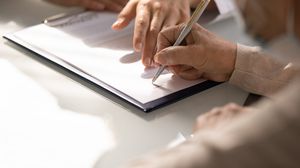 Doi tineri, semnează contractul de închiriere și primesc cheile de la proprietar