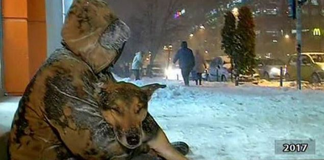 La un an distanta, Nelu, unul dintre fratii care au primit o casa de la Gigi Becali, s-a intors pe strada, tot cu cainele. Pe un ger napraznic, acesta se incalzeste tot cu 'prietenul sau', cainele.