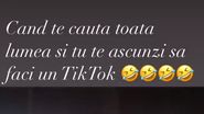 „Când te caută toată lumea și tu te ascunzi să faci un TikTok”, a dezvăluit vedeta pe contul ei de Instagram.