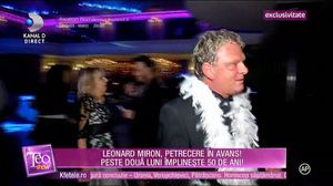 A fost petrecere mare în cinstea lui Leonard Miron. A fost muzică bună, invitatții s-au delectat cu mâncare delicioasă, nume grele din showbiz au acceptat invitația la party a sărbătoritului. Când în scenă și-a făcut apariția și tortul spectaculos, toți prietenii lui Leonard au insistat ca el să țină un scurt discurs. Cu ocazia aceasta, sărbătoritul i-a făcut și o declarație de dragoste partenerului de viață.