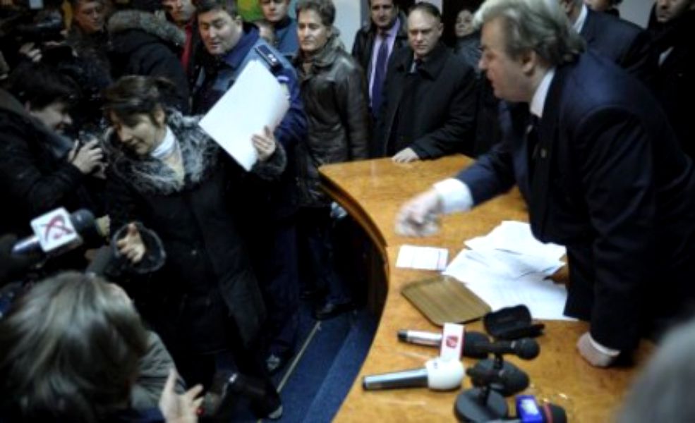 Tribunul i-a adresat cuvinte jignitoare Paulei Șomâldoc, de la „vită încălțată”, „pitica dracului” și „escroacă”, până la „șomâldoaca escroaca”. Enervat la culme că femeia în continuare încerca să îi explice că trebuie să evacueze biroul, i-a aruncat un pahar cu apă în față: „Ieși afară, c…o, din sediul meu!”.