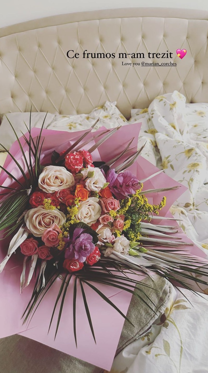 Cu numai câteva momente în urmă, Carmen de la Sălciua a postat în mediul online o serie de imagini cu surpriza pe care Marian Corcheș i-a făcut-o în această zi specială. Artista a fost surprinsă de partenerul său cu un buchet de flori colorat chiar la pat, în semn de apreciere pentru cea care, în urmă cu doar câteva luni, i-a devenit soție.