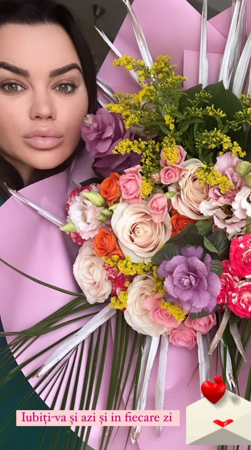 Carmen de la Sălciua s-a fotografiat cu buchetul flori primit de Marian Corcheș, în dreptul imaginii scriind și un mesaj de dragoste pentru soțul său, semn că surpriza pe care i-a făcut-o i-a făcut ziua mult mai frumoasă.