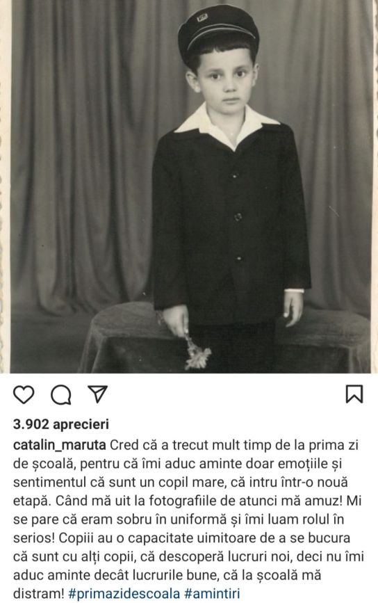 Cătălin Măruță a primit, de-a lungul timpului, multe mesaje în care fanii îi scriau că fiica lui îi seamănă leit. În urmă cu ceva vreme, prezentatorul TV chiar a postat o fotografie din copilărie, de pe vremea când era școlar, iar cei de acasă au crezut că în imagine este Eva. Totuși, se pare că micuța nu a fost de acord cu părerile celor care îl urmăresc pe tatăl ei, ba mai mult, a ținut să-i cotrazică, într-un clip postat pe Instagram: