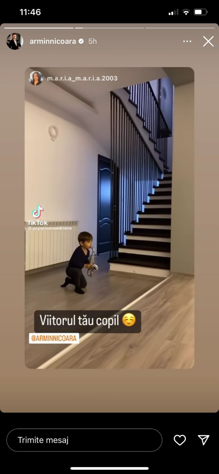 Armin Nicoară a distribuit clipul pe pagina sa de Instagram, vizibil satisfăcut de performanța copilului.